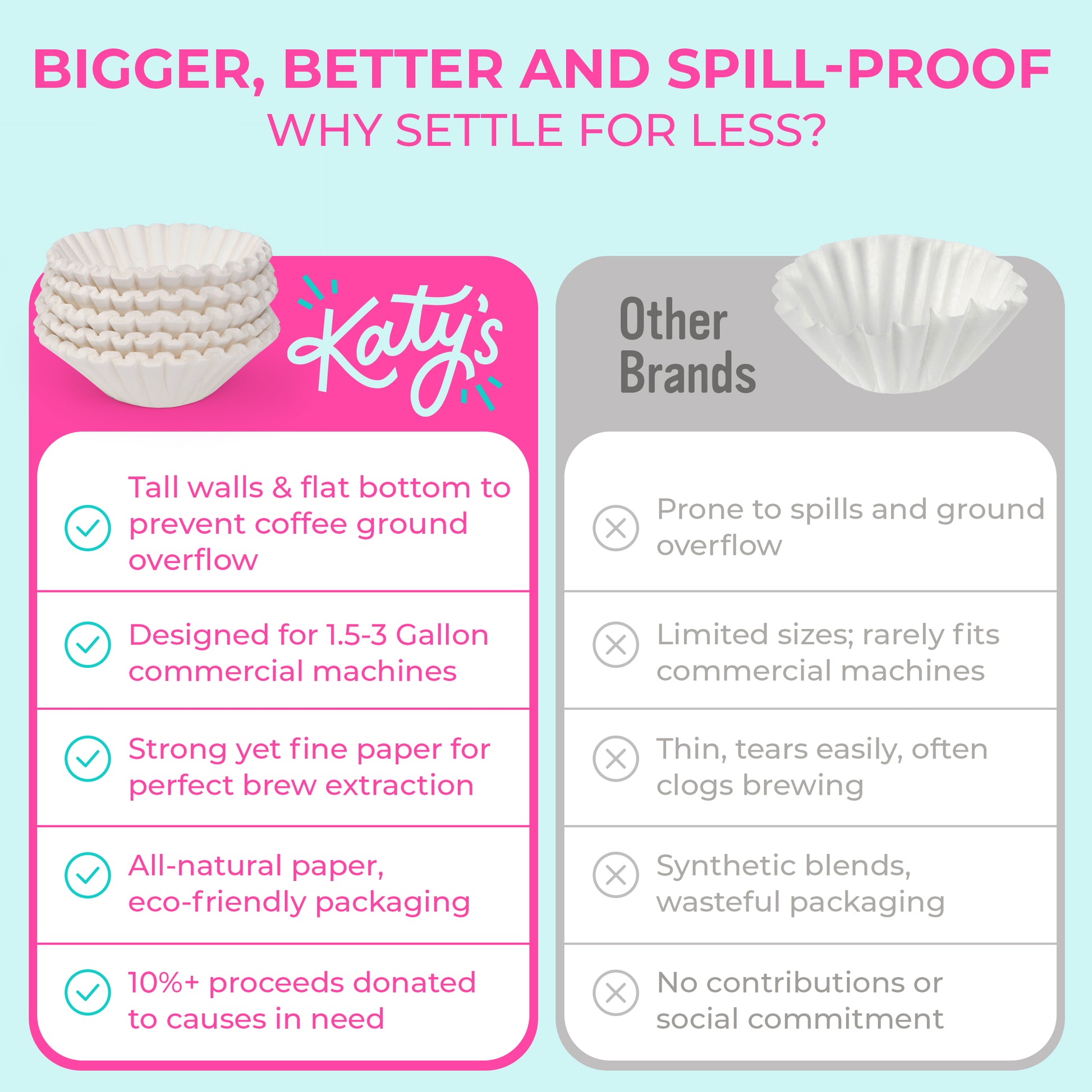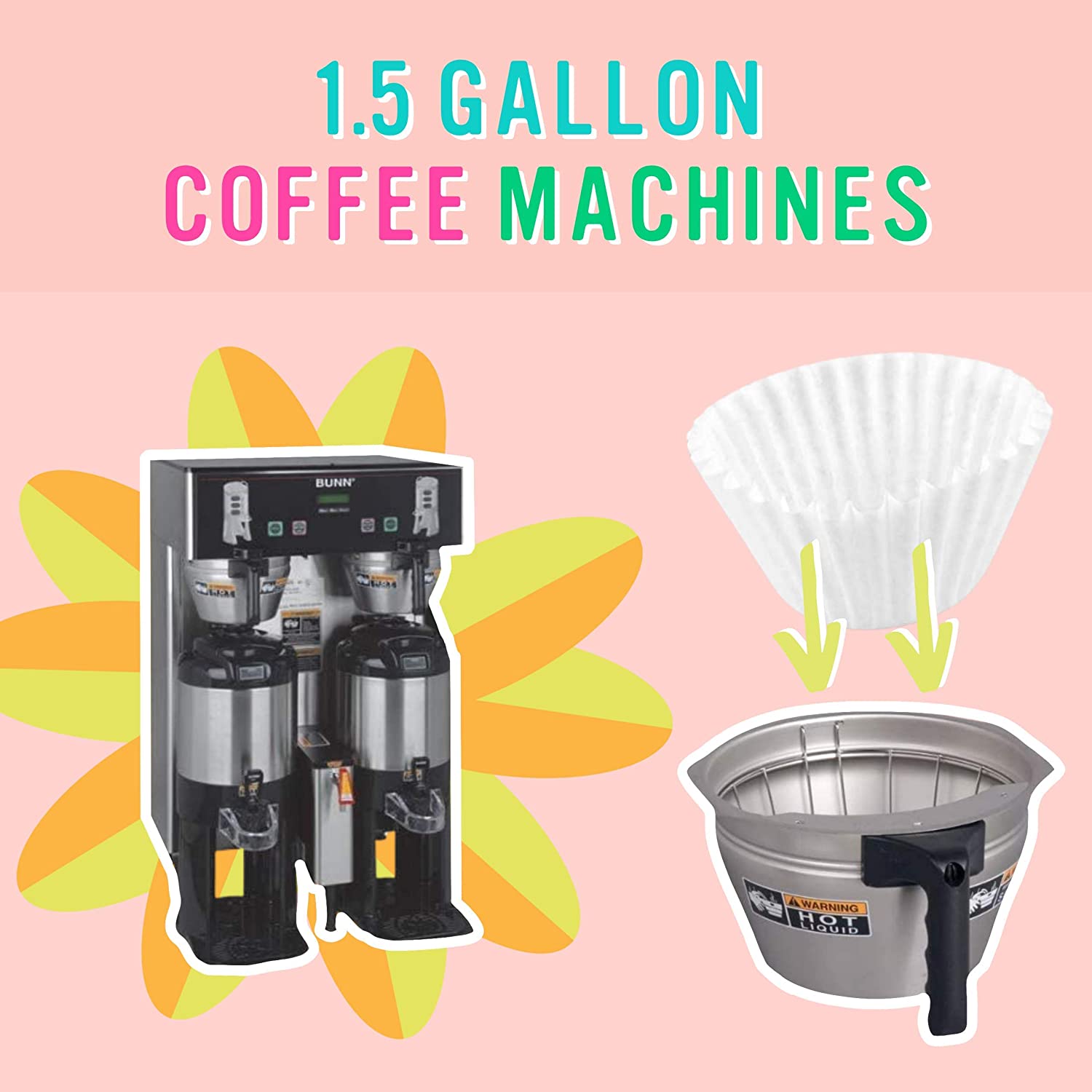 The best extra large coffee filters (13 x 5 inches) for commercial coffee, tea machine, and extra uses. Easily brew coffee in a 1.5 gallon machine or fresh brew iced tea in a 3 gallon machine inside of our XL, tall walled filters. Also great for straining yogurt, crafts, polishing glassware, and more. 250 pack, 1 year+ supply.