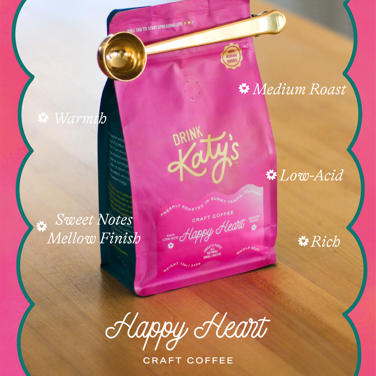 Brewed with love from a smooth blend of South American beans, our Happy Heart Medium Roast is crafted to bring balance, warmth, and joy to every sip. With naturally sweet notes and a mellow finish, this coffee is your daily reminder to pause, smile, and savor the moment. We created this roast to do more than just taste good—we want you to have a happy heart while you drink it. 💛