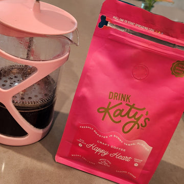 French Press: Preheat your french press, then add one tablespoon, or Katy's coffee clip spoon, of coffee for every 4 ounces of water desired. Add boiling water and stir. Place on your lid and let steep for four minutes. Slowly and gently press the lid down. Pour and enjoy.