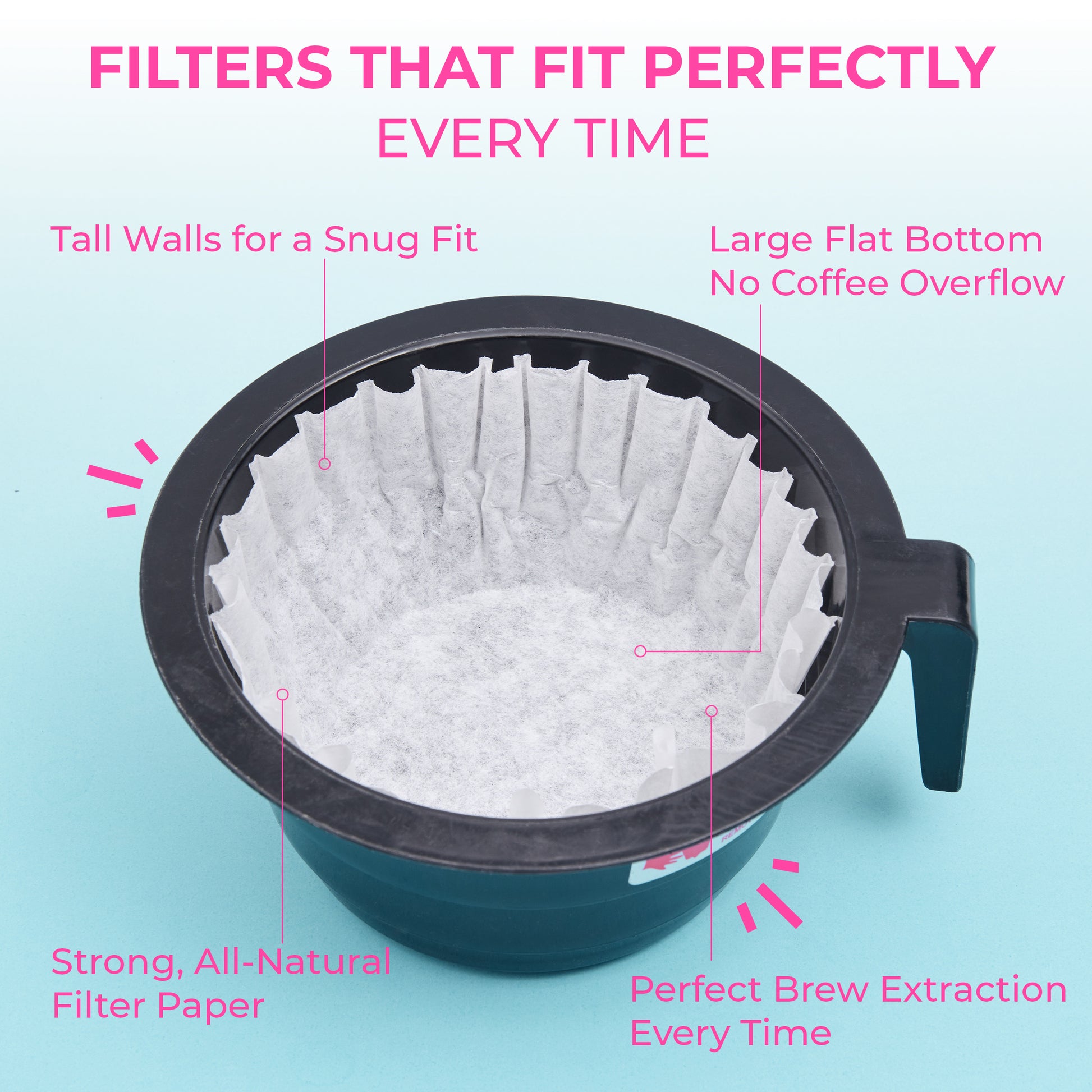 Compatible with most 10-12 cup flat bottom home model coffee makers to ensure tall walls and no coffee grounds into your brew! Including Bunn, Decker, Mocamaster, Cuisinart, and more.