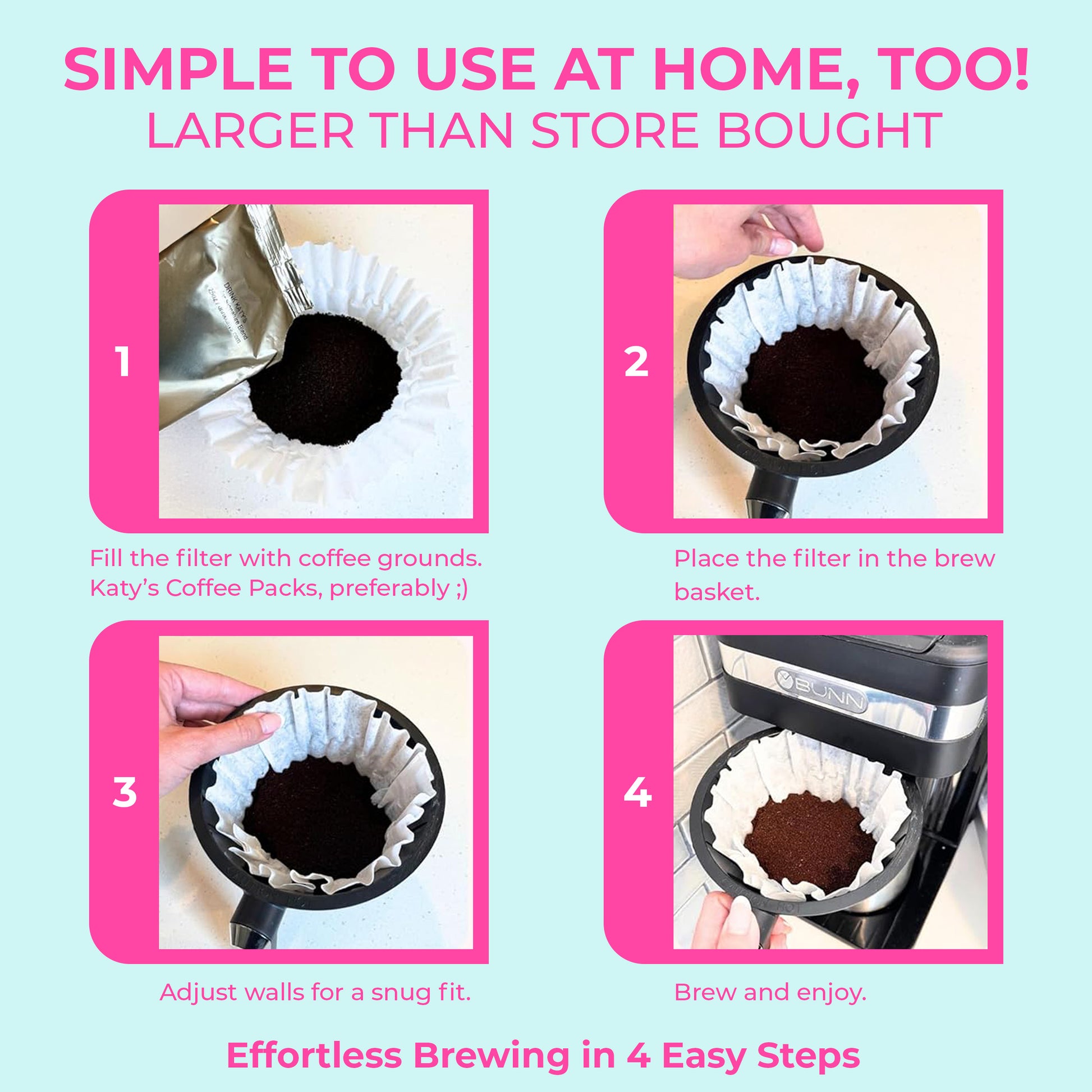 Remove one coffee filter from pack. Place on counter and fill with desired amount of coffee grounds. Then place into coffee brew basket, brew, and enjoy!